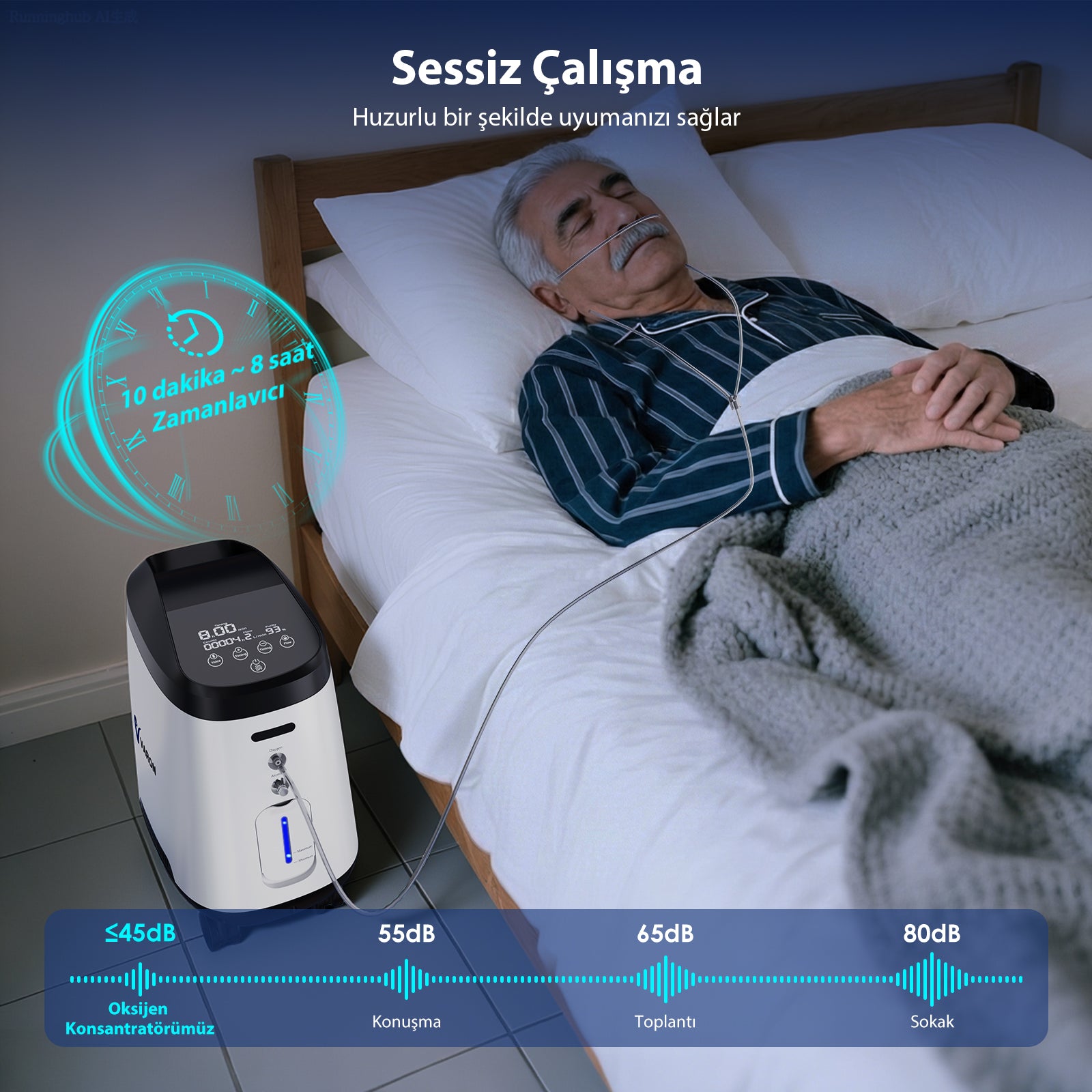 Güçlü ve dayanıklı saf bakır çift silindirli yağsız kompresörüyle bu oksijen jeneratörü 24 saat kesintisiz oksijen sağlar. Zamanlayıcıyı 10 dakikadan 8 saate kadar ayarlayın ve ≤45dB gürültü seviyesiyle sessiz bir gece uykusunun tadını çıkarın. Solunum sağlığınızı tam konfor içinde koruyun.