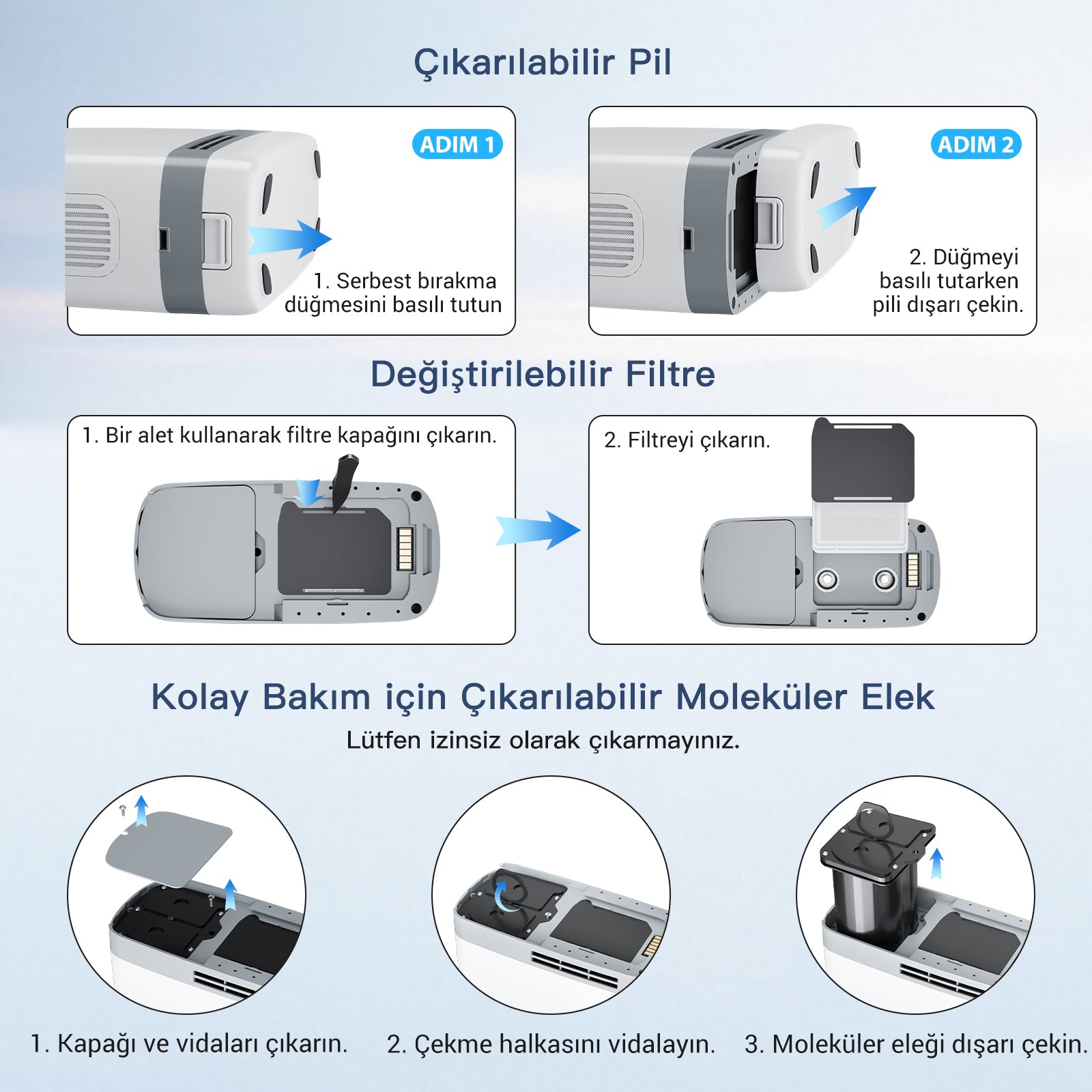 --Oksijen jeneratörünün filtresi havadan toz, kir ve polenleri temizleyebilir. Filtreyi ayda bir kez temizlemek cihazın ömrünü uzatacaktır.